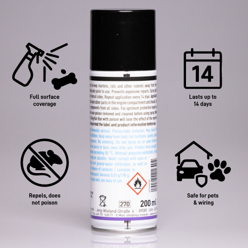 Because of this, prevention is always better than repair. Liqui Moly Rat Ban creates a protective barrier that discourages rodents from settling in and chewing on sensitive parts.