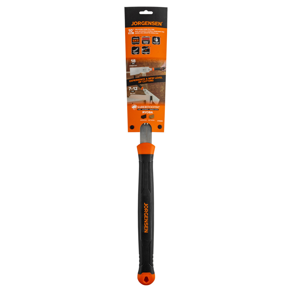 Jorgensen 250mm pull saw with flexible double edge blade. Fine and coarse teeth offer precision and speed for woodworking and finish carpentry.
